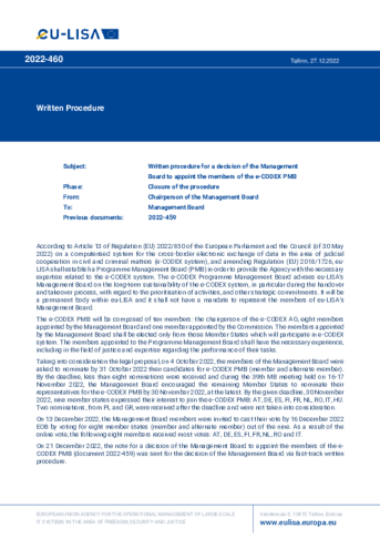 Through the current Register you can consult all publicly available documents of eu-LISA by browsing the documents via category from the subject matter menu. The list displays documents in reverse chronological order and is regularly updated.