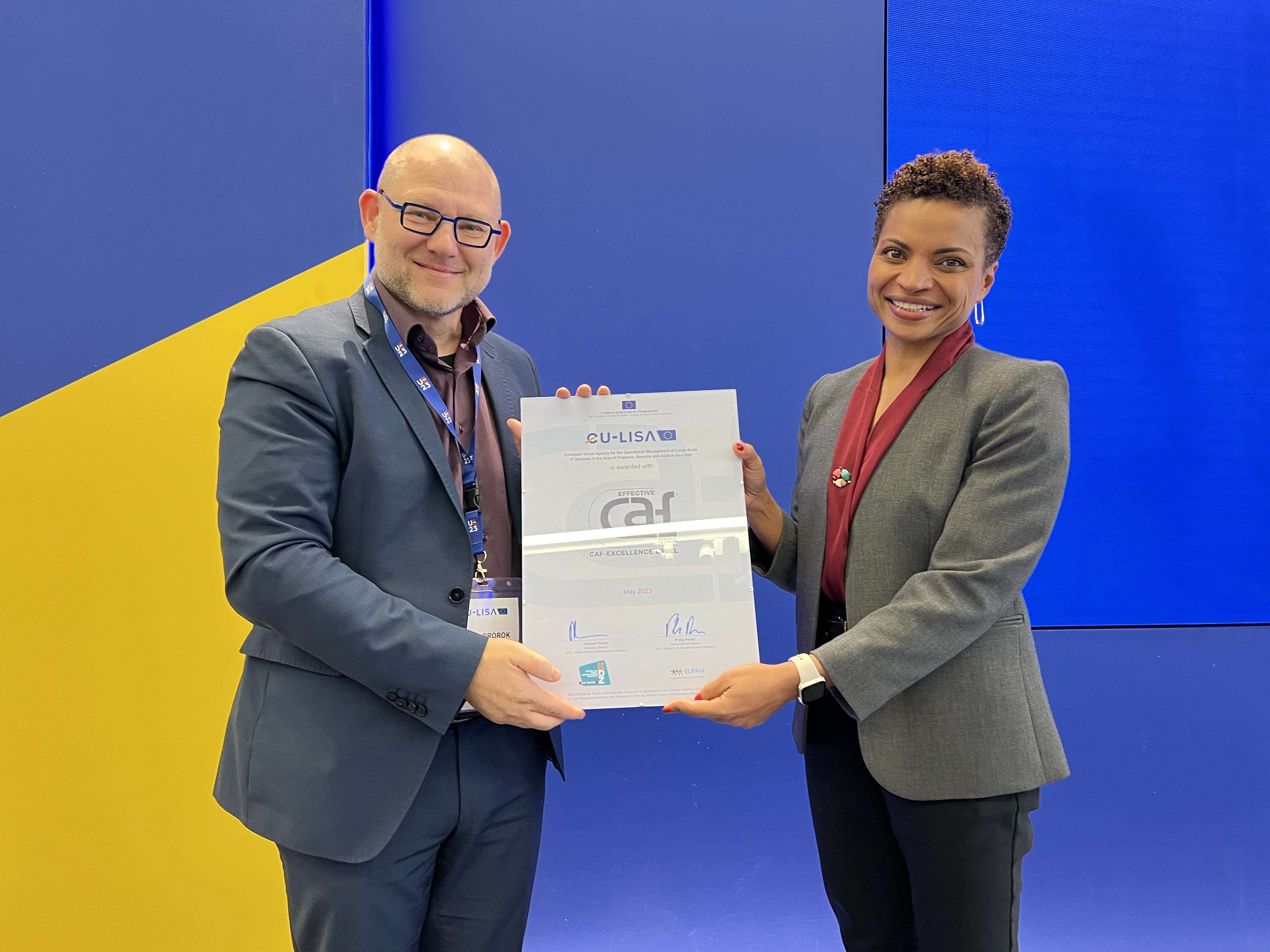 The European Union Agency for the Operational Management of Large-Scale IT Systems in the Area of Freedom, Security and Justice (eu-LISA) was honoured today, November 15 2023, with the European quality management certificate “CAF Efficient User” issued by the Austrian CAF Centre – KDZ Centre for Public Administration Research.