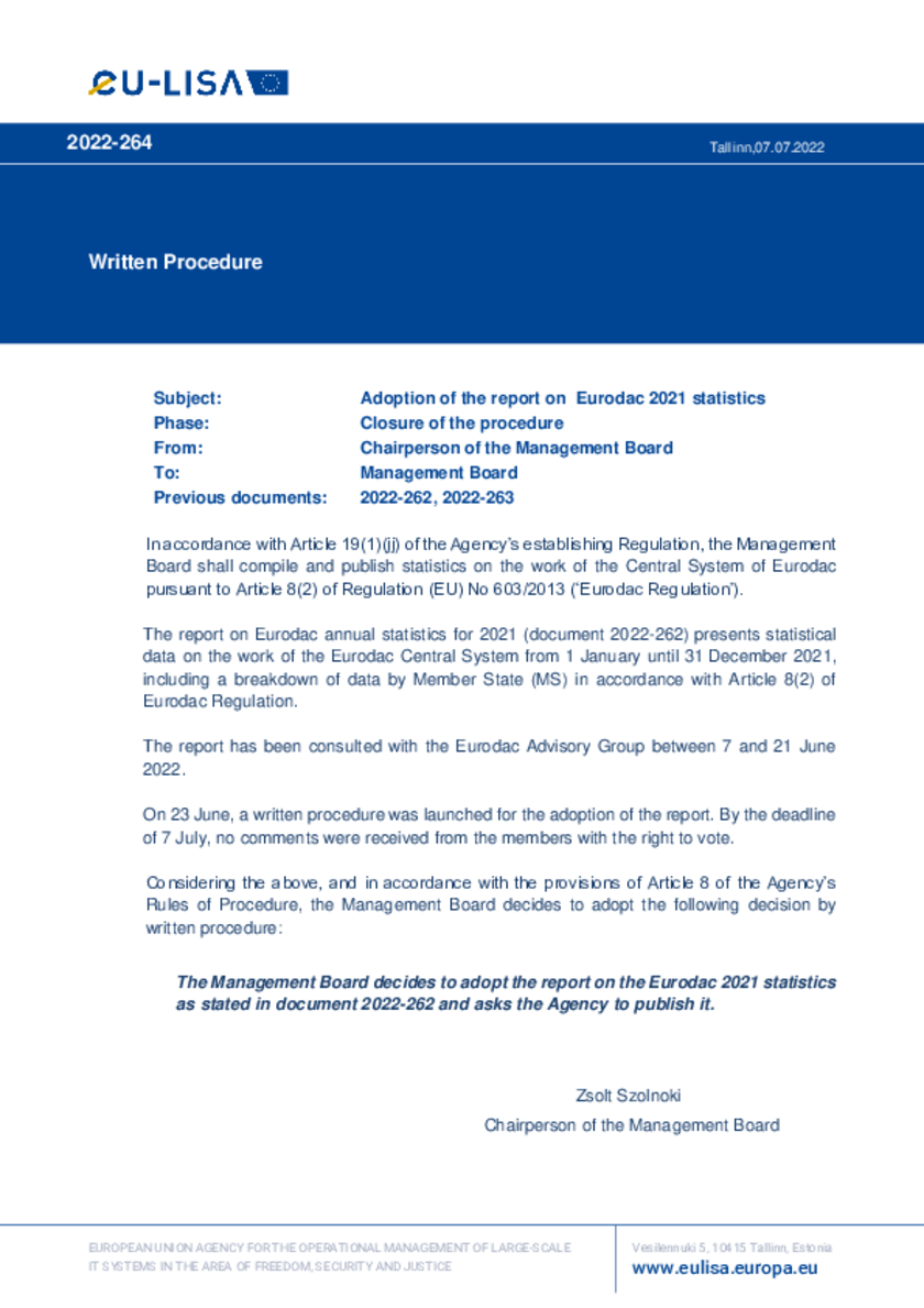 2022-264 Adoption of the report on Eurodac 2021 statistics