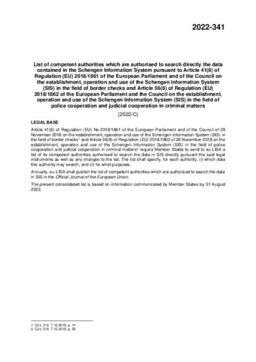 2022-341 List of competent authorities which are authorised to search directly the data contained in the Schengen Information System