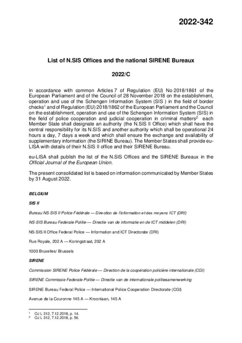 2022-342 List of N.SIS Offices and the national SIRENE Bureaux