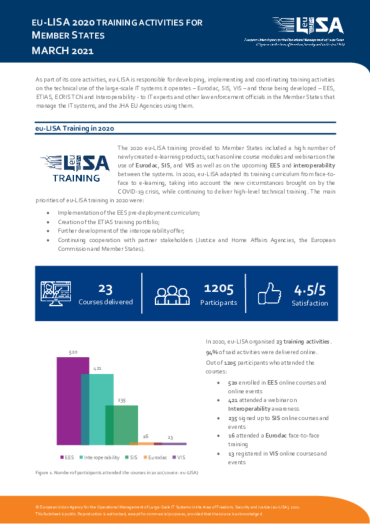 As part of its core activities, eu-LISA is responsible for developing, implementing and coordinating training activities on the technical use of the large-scale IT systems it operates – Eurodac, SIS, VIS – and those being developed – EES, ETIAS, ECRIS TCN and Interoperability - to IT experts and other law enforcement officials in the Member States that manage the IT systems, and the JHA EU Agencies using them.