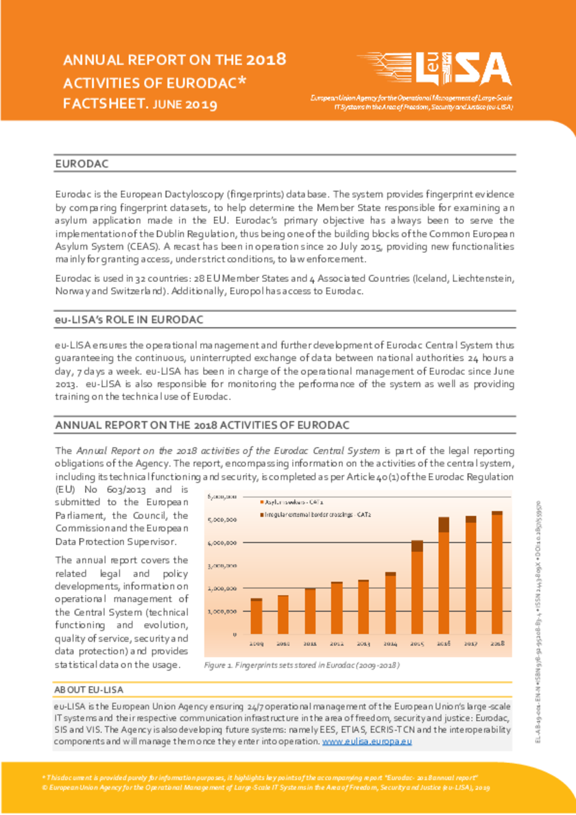This factsheet contains the highlights of the Eurodac 2018 Annual Report and should be considered as an annex to the report itself.