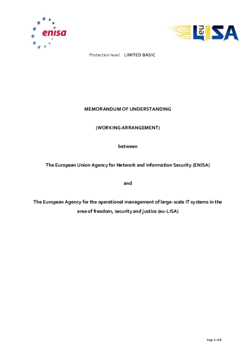 Memorandum of Understanding between ENISA and eu-LISA