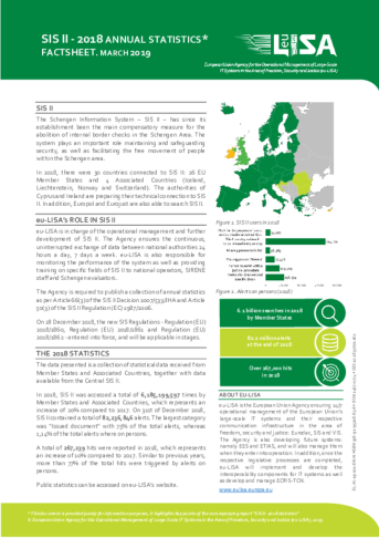 SIS – 2018 Statistics is the annual public statistical document, published by eu-LISA, presenting a collection of data received from Member States and Associated Countries connected to SIS together with data available from the Central SIS system, as per the legal instruments governing the system.